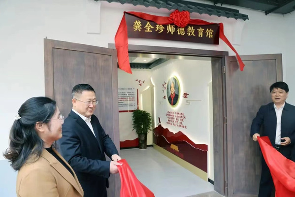近日,在全市深入开展第二批学习贯彻习近平新时代中国特色社会主义思想主题教育和深入学习贯彻习近平总书记考察江西重要讲话精神之际,龚全珍师德教育馆揭牌仪式在萍乡开放大学龚全珍师德教育学院举行。英国beat365官方网站党委书记贺瑞虎,萍乡市委副书记、市委教育工作领导小组常务副组长鲍峰庭,民盟市委会主委、萍乡市教育局副局长李敏,萍乡开放大学党委书记周积纯共同为龚全珍师德教育馆揭牌,开放教育办学评估专家组、英国beat365官方网站相关领导、萍乡开放大学校全体教职员工参加揭牌仪式。仪式结束后,领导们在讲解员的引导下参观了教育馆。