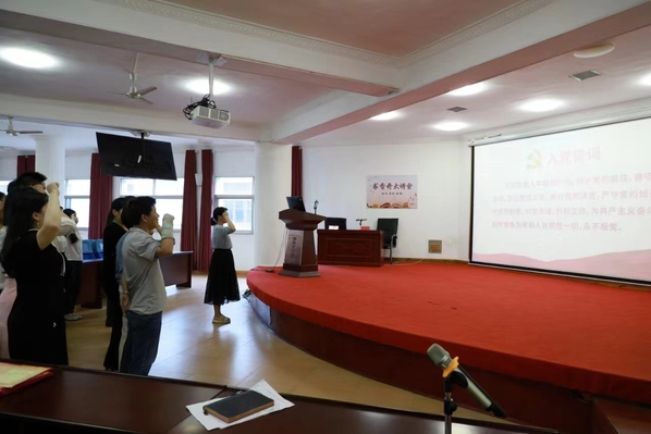 “我志愿加入中国共产党,拥护党的纲领,遵守党的章程,履行党员义务……”在金文玲带领下,党员们庄严肃立、高举右手,共同重温入党誓词,追忆入党初心,在庄严的仪式中进一步坚定了他们感党恩、跟党走的信心和决心。