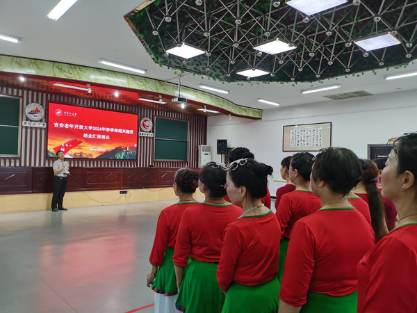 6月28日上午,吉安老年开放大学在学院报告厅举办2024年春季舞蹈兴趣班结业汇报演出,吉安开放大学副校长王志民出席并讲话,吉安老年开放大学兴趣班舞蹈队、受邀的校外舞蹈队、社区教育办公室工作人员共计70多人参加。