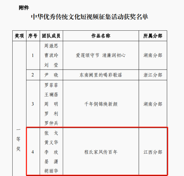 近日,国家开放大学2023年中华优秀传统文化短视频征集活动评选结果揭晓,我院选送的作品在213个作品中脱颖而出。思政教师张戈主讲的《程氏家风传百年》荣获一等奖