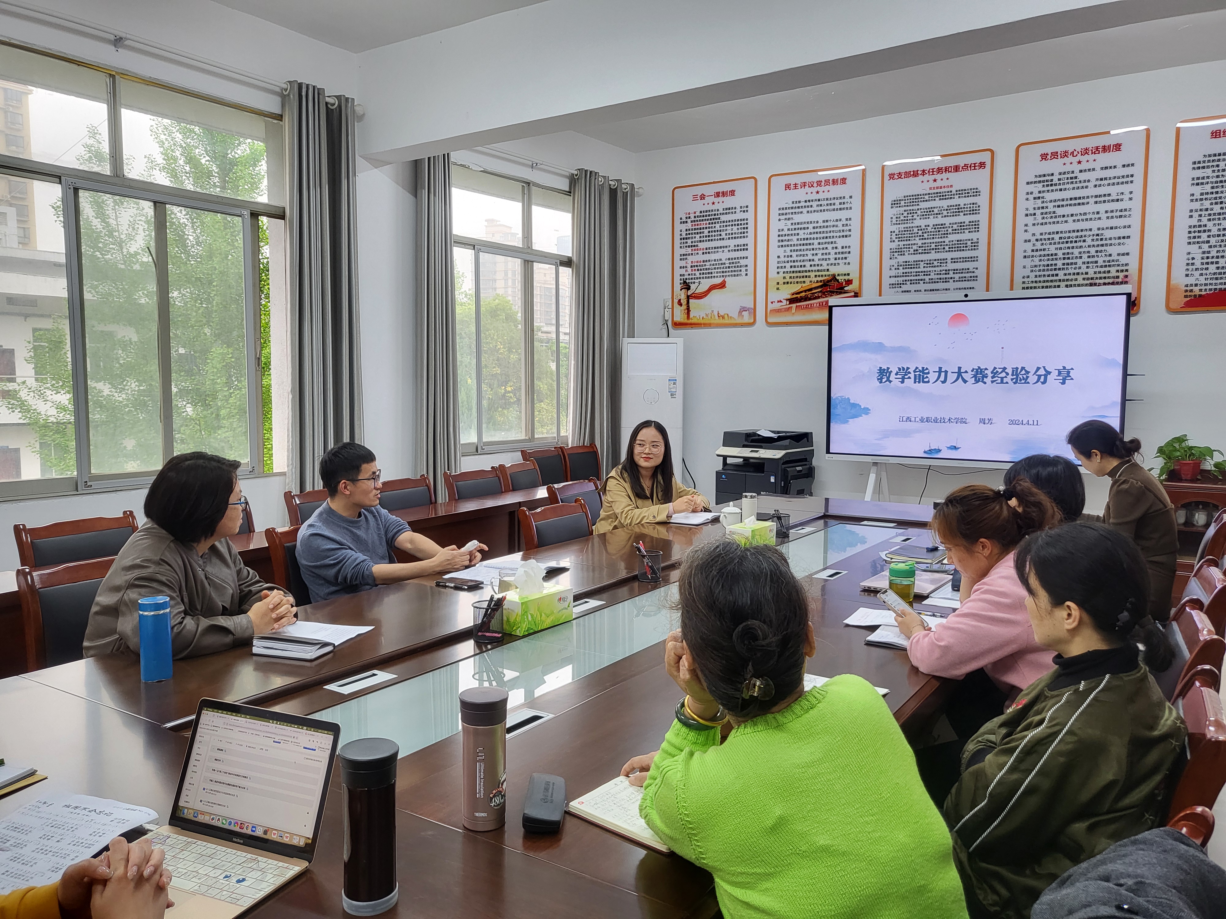 朱欣成教授围绕《2024年江西职业院校技能大赛能力比赛方案》进行解读剖析,重点从教学设计、教案、课堂教学展示视频等方面为参赛选手的作品进行了具体指导。周芳老师曾获2020年江西省职业院校技能大赛教学能力比赛一等奖,她以参赛选手的身份角色,从学文件、搭框架、巧设计、练内功等方面和参会老师作了参赛经验分享,并为参赛选手加油鼓劲。