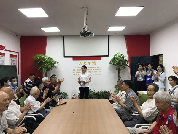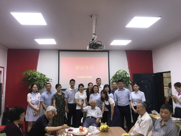 参会人员共同为社区部分老党员过集体政治生日,并对一名102岁老党员的生日和政治生日双重喜庆表达了祝贺。这位百岁老人与大家一同忆党史、感党恩,并深情地分享对党的心里话:没有共产党就没有新中国,饮水思源感党恩,坚定信念跟党走。