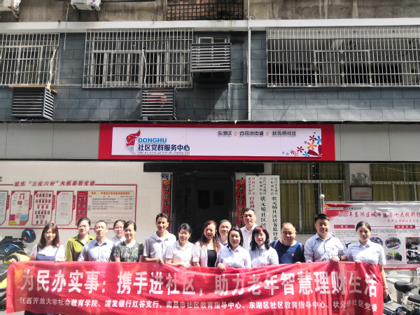 6月15日,学院联合南昌市社区教育指导中心、东湖区社区教育指导中心、浦发银行红谷支行前往东湖区状元桥社区开展为民办实事“携手进社区,助力老年智慧理财生活”活动,为社区老年人送上慰问,普及数字信息知识,助力老年人享受智慧生活。江西省教育厅职成处二级调研员杨春年,学院院长余歙峰、副院长李强,南昌市广播电视大学校长万晖,东湖区教体局副局长周林、南昌东湖区社区教育指导中心主任邓仁俊,浦发银行红谷支行行长梁晓红、副行长万莉等出席活动。状元桥社区30多位老人和工作人员参与活动。