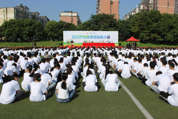 军训动员大会在嘹亮的军歌声中落下帷幕,2023级新生也开启了军训“第一课”。(供稿:宣传部、人文与健康学院 编辑:罗楚颖 责编:张明)