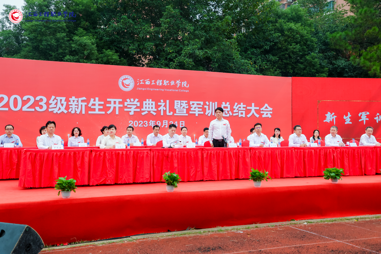 金秋九月,江西工程职业学院迎来了1908名2023级新同学。9月24日上午9时,学校2023级新生开学典礼暨军训总结大会在英国beat365官方网站(江西工程职业学院)西湖校区运动场隆重举行。校党委书记贺瑞虎,校党委副书记、校长黄平槐等校领导,各专业学院党政负责人,学校相关部门的负责人和新生辅导员到场观礼。
